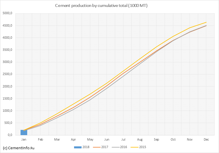 According to the analysis of Statkom of the Republic of Belarus, conducted by CementInfo.Ru, production of cement decreased over the month by 14.92% in January 2018 and has made 219.5 thousand MT (in the last month - 258.0 thousand MT, in January 2017 - 200.8 thousand MT). Production of cement by January 2018 increased compared to the same period last year by 9,31% and has made 220 thousand MT (in 2017 - 201 thousand MT)..